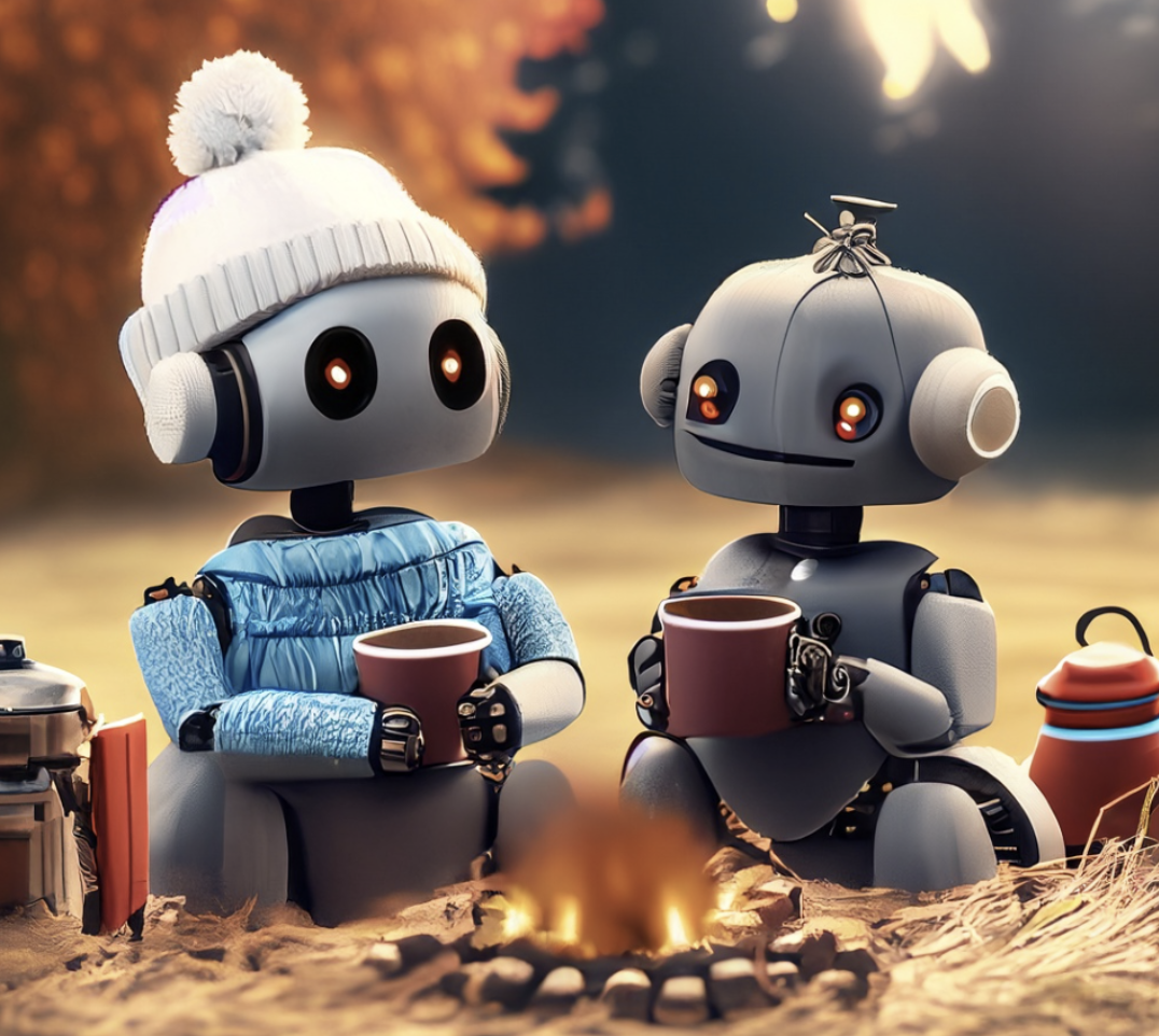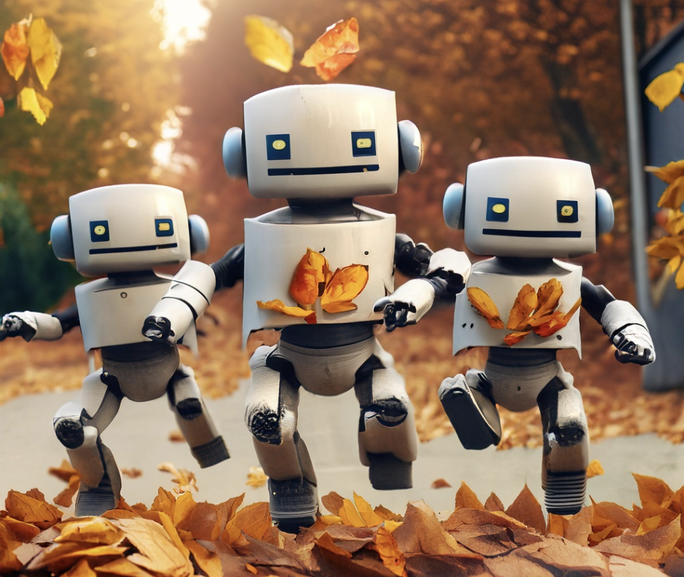 "Don't mind us, we're just world domination one leaf pile at a time." <3 The bots